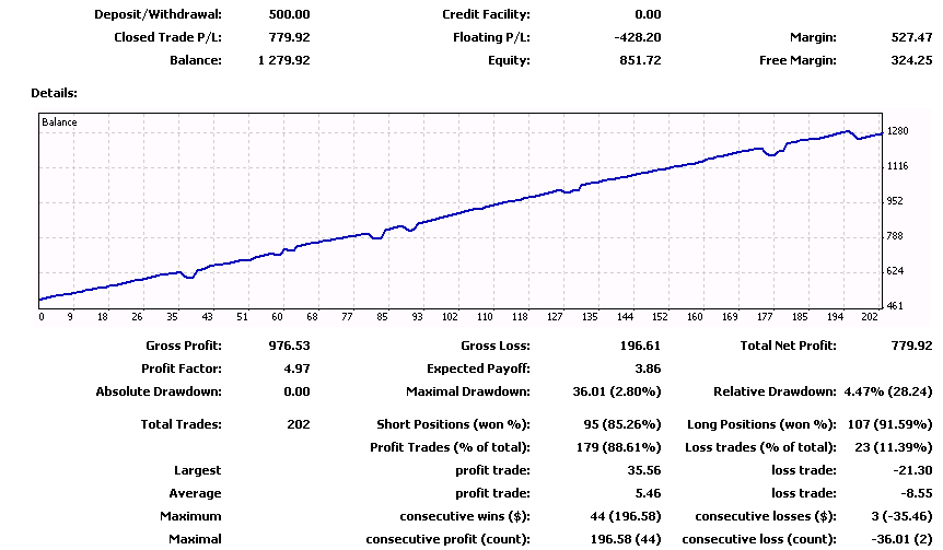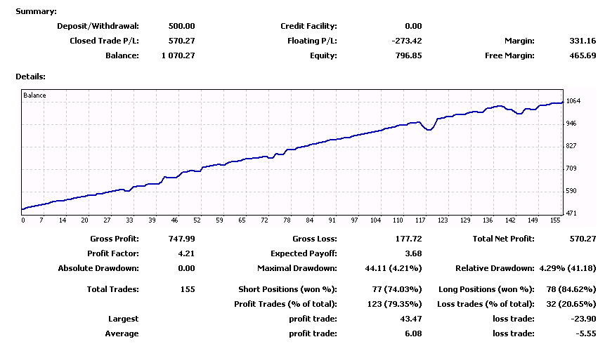 1. Hedge=OFF, News filter=OFF