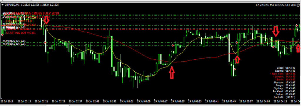 I am FT now to check the order is exactly placed when 2 EMA line crossed or not.
